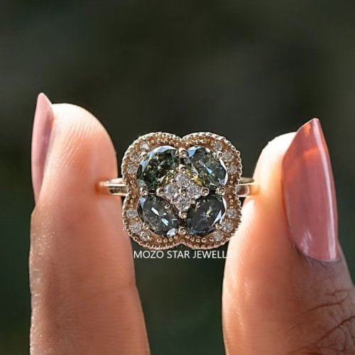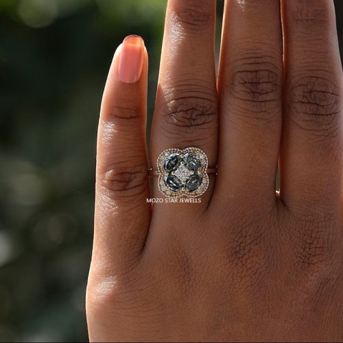 Blue and Green Moissanite Ring