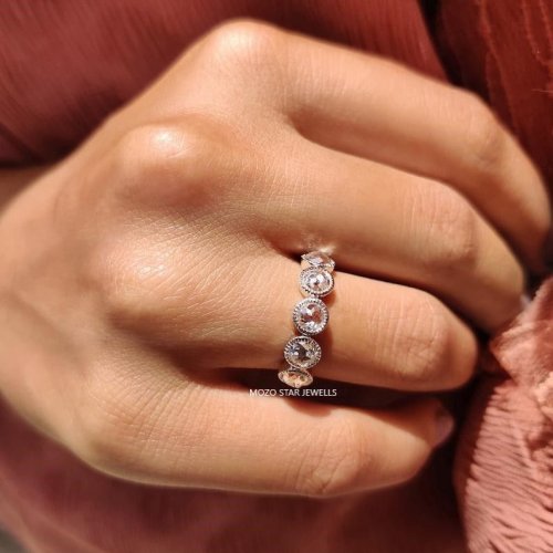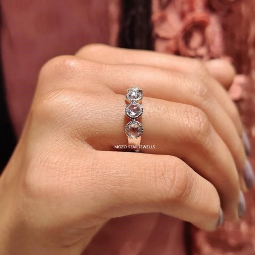 Round Rose Cut Moissanite Diamond Ring
