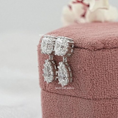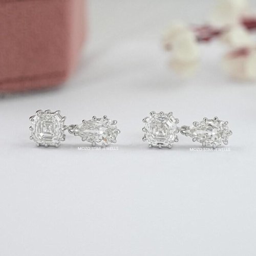 Old Mine Asscher Moissonite Diamond Earrings