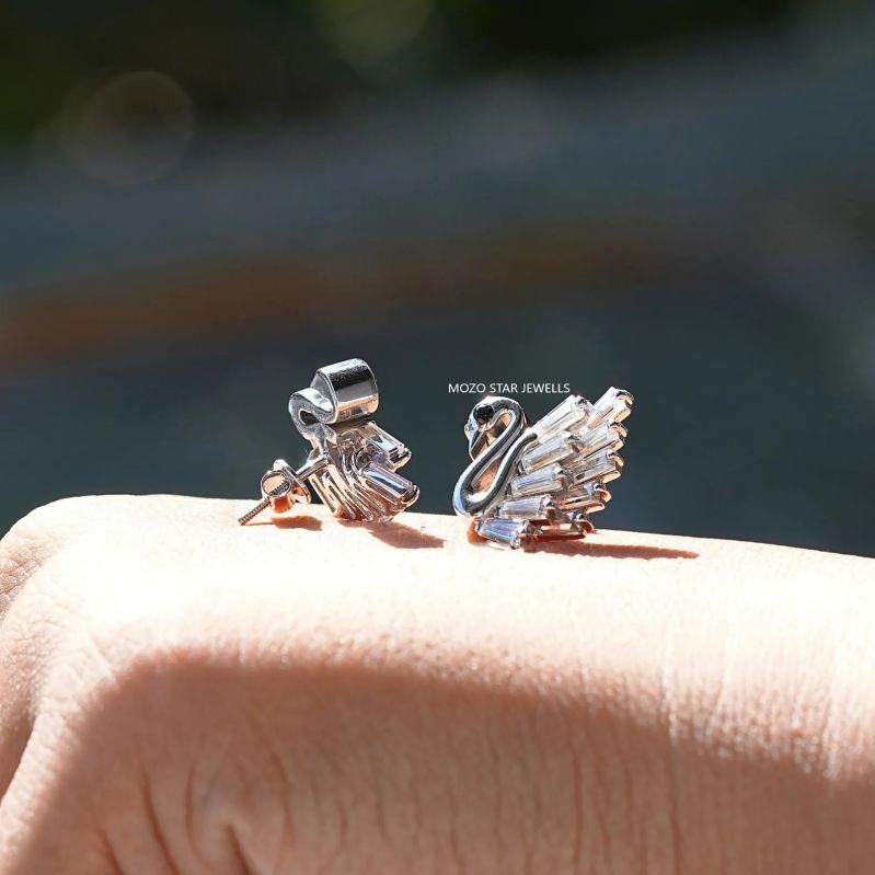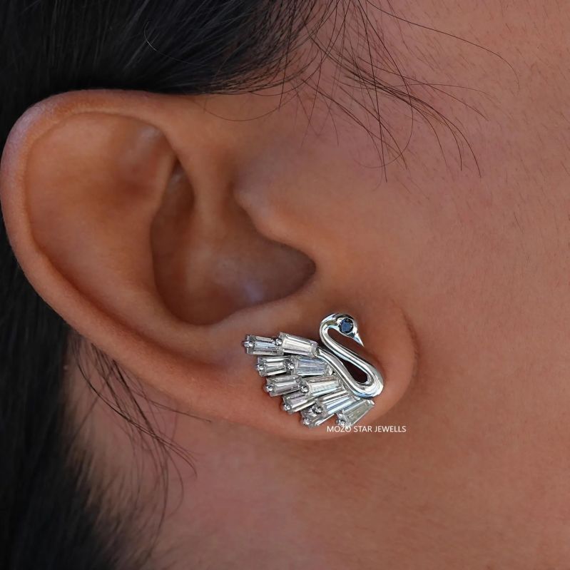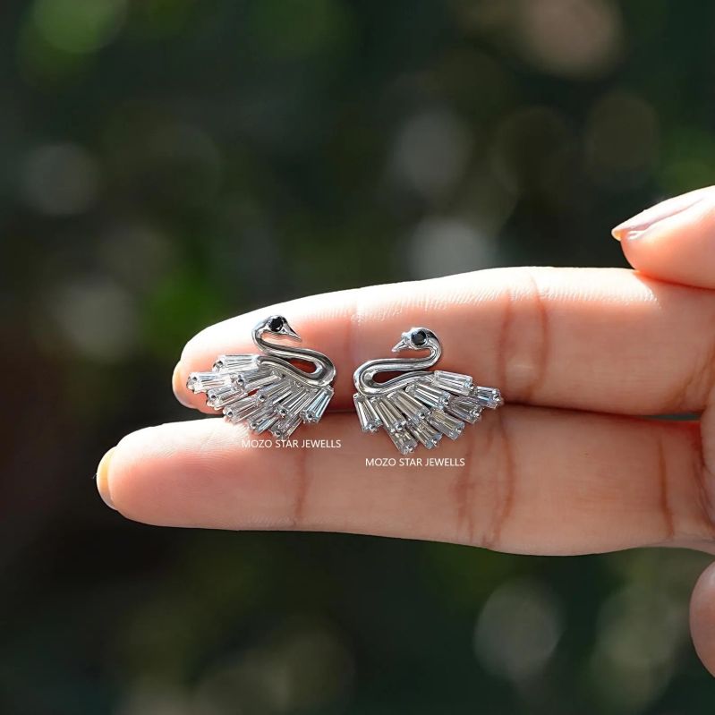 Tapper Baguette Moissanite Earrings, Swan Moissanite Wedding Earrings, Colorless Moissanite Engagement Earrings, Cluster Set Moissanite Bridal Studs Earrings, 14K Solid White Gold Moissanite Proposal Earrings, Black Round Moissanite Anniversary Earrings, Elevate Your Elegance With Moissanite by MOZO STAR JEWELLS.