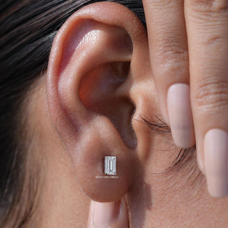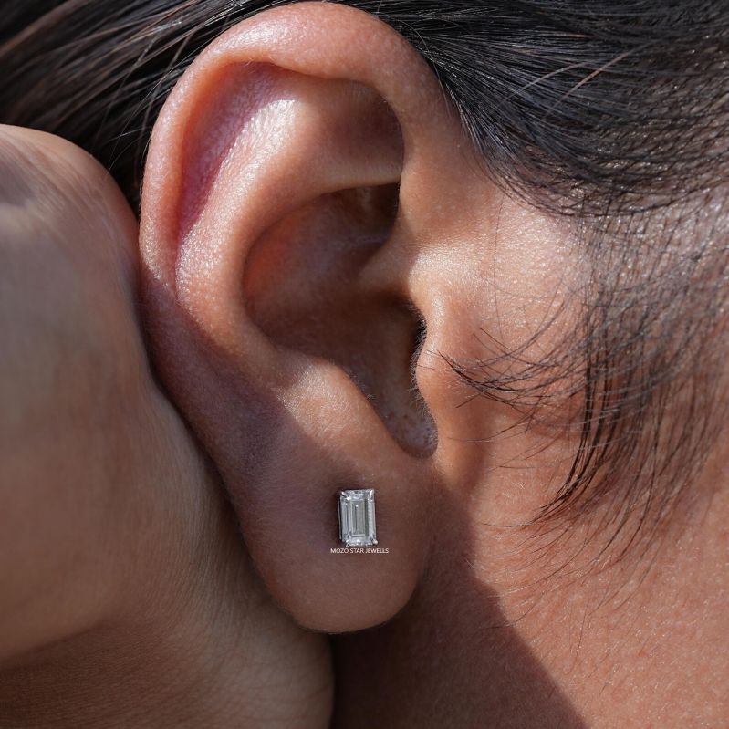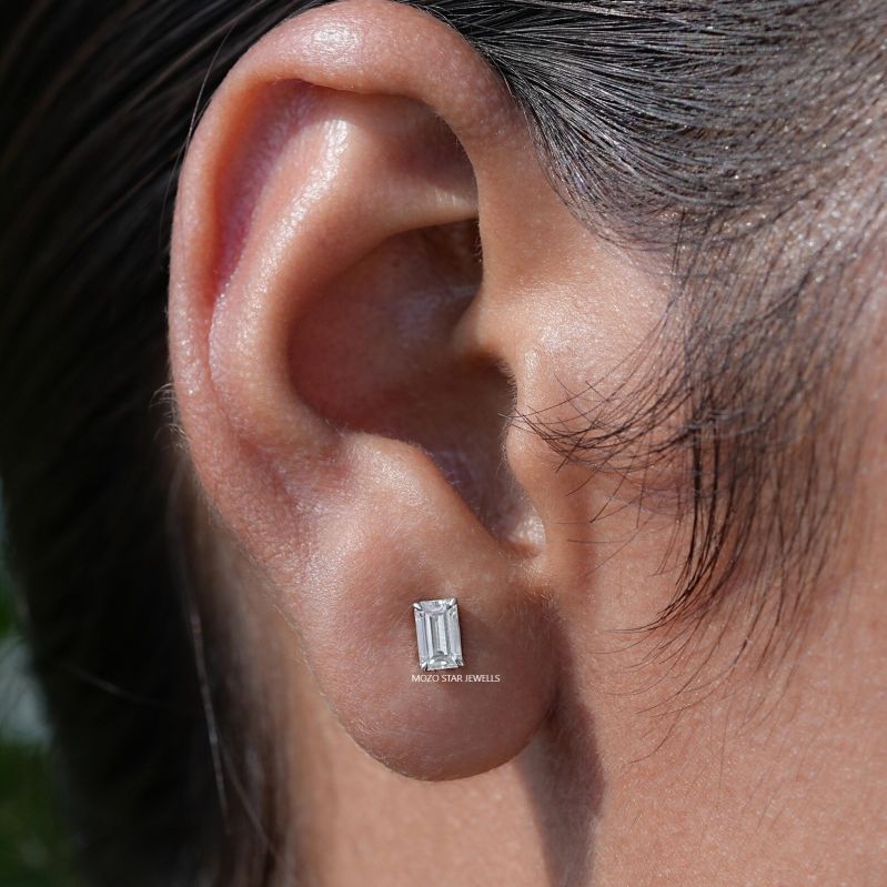 Emerald Moissanite Stud Wedding earrings, Colorless Moissanite Bridal Earrings, Solitaire Moissanite Engagement Earrings, 14K Solid White Gold Moissanite Earrings, Prong Set Moissanite Bridesmaid Ring, Claw Prong Set Moissanite Birthday Earring, Elevate Your Elegance With Moissanite by MOZO STAR JEWELLS.