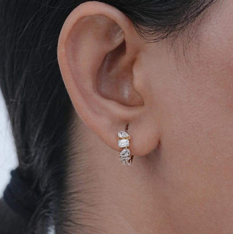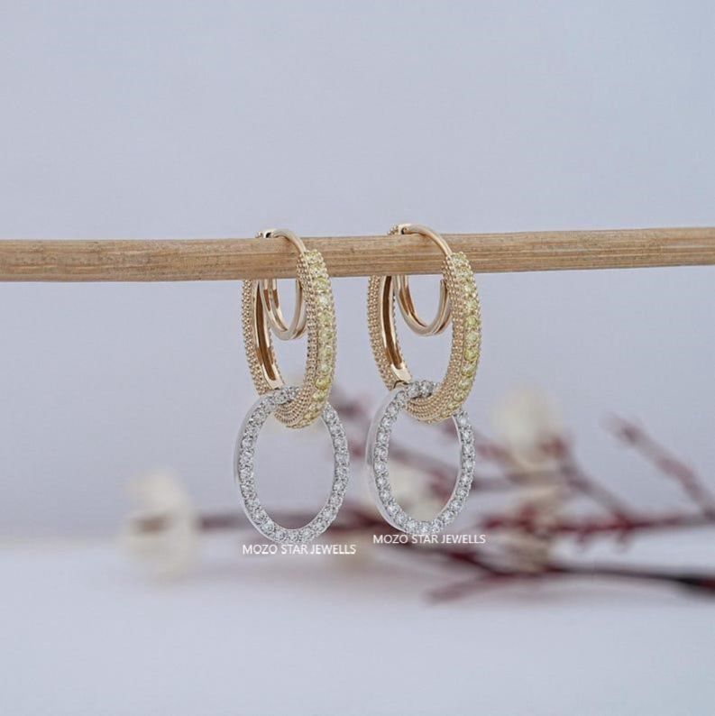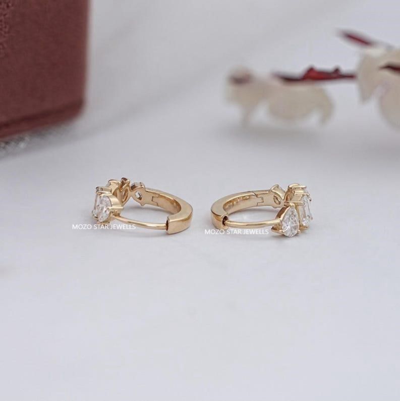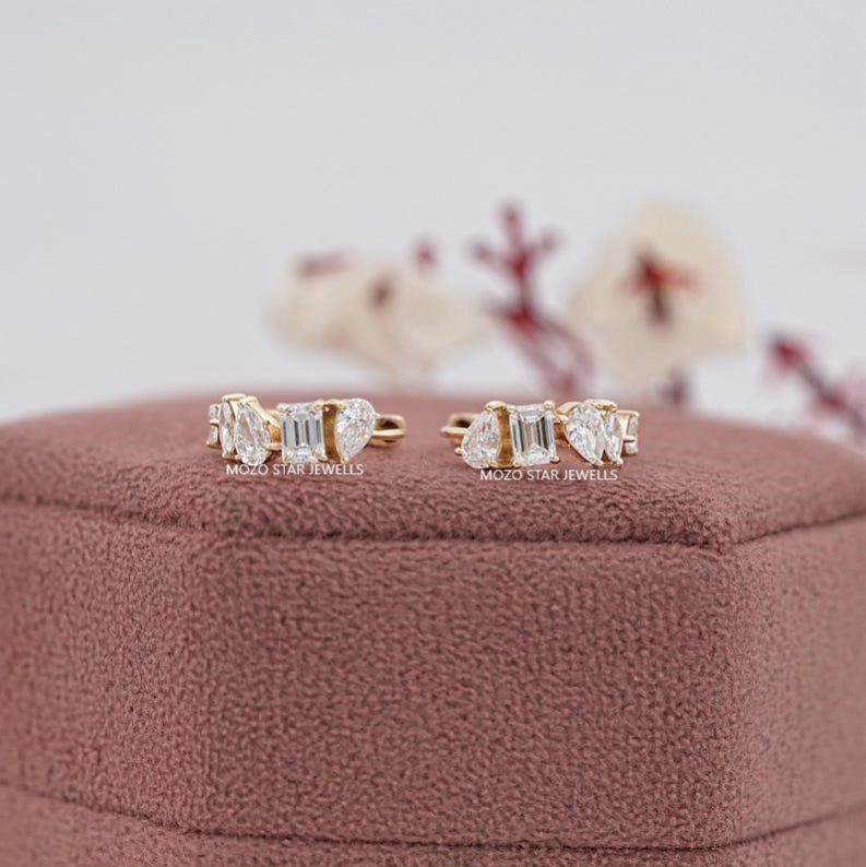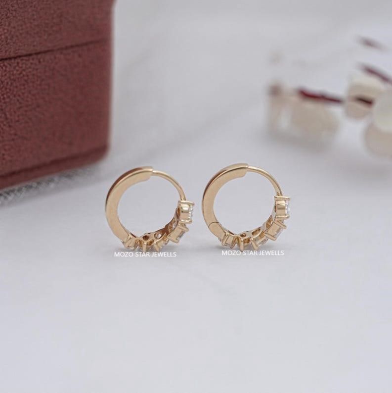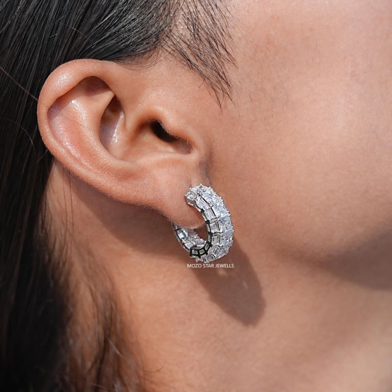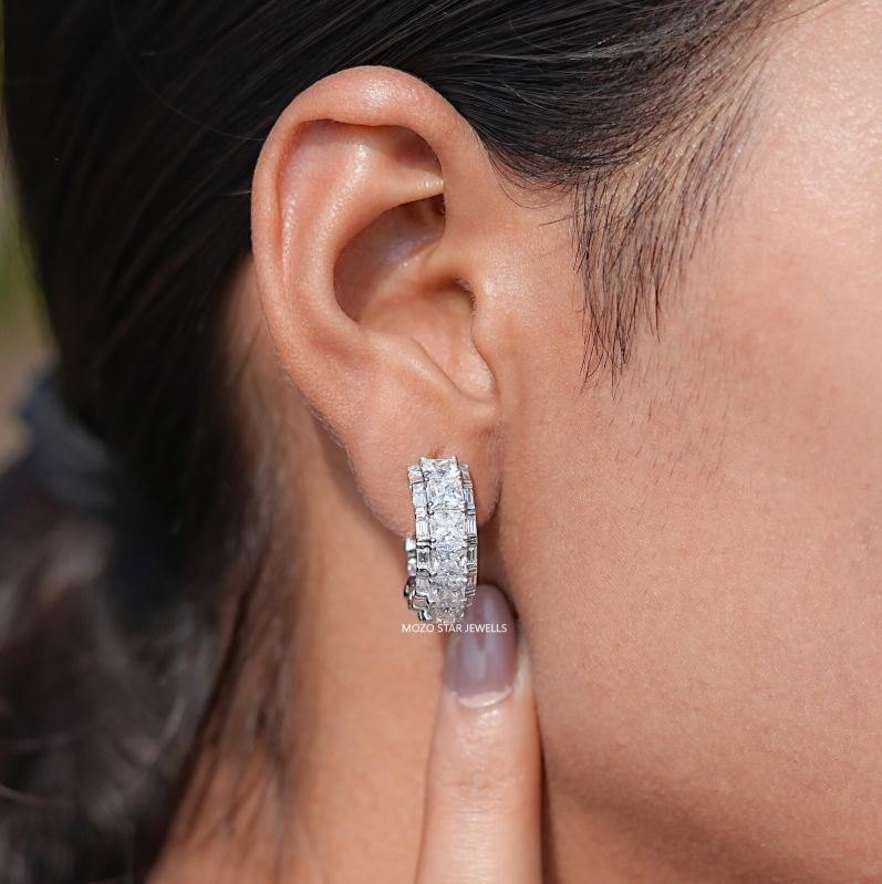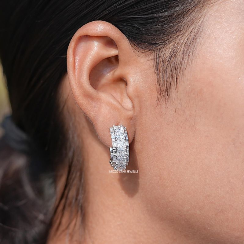 Moissanite Princess Wedding Earrings, Inside Out Moissanite Huggie Hoop Earrings, Triple Row Moissanite Earrings, 14K Gold Moissanite Earrings, Clip-On Moissanite Engagement Earrings, Elevate Your Elegance With Moissanite by MOZO STAR JEWELLS.