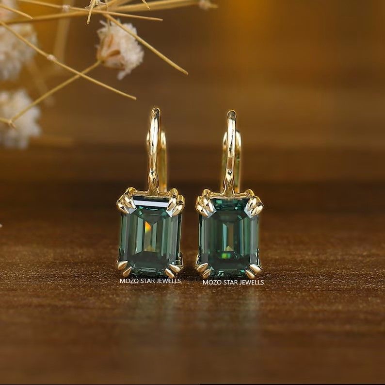 Solitaire Moissanite Engagement Earrings/ Emerald Moissanite Wedding Earrings/ Dark Green Moissanite Earrings/ Dangle Moissanite Earrings ,Double Claw Prong Set Moissanite Anniversary Earrings ,Elevate Your Elegance With Moissanite by MOZO STAR JEWELLS.