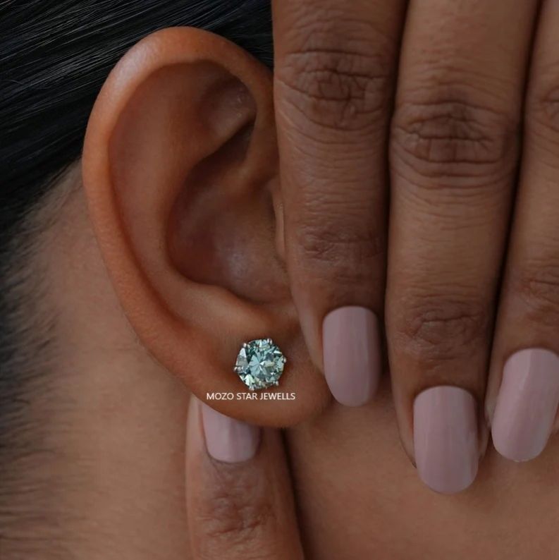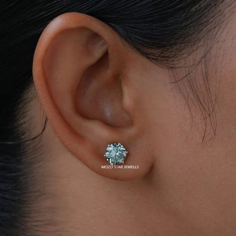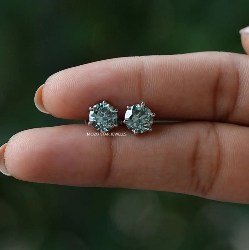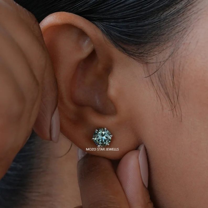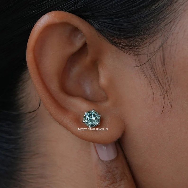 Round Moissanite Bridesmaid Earrings, Blue Moissanite Wedding Earrings, Solitaire Moissanite Engagement Earrings, 10K Solid White Gold Moissanite Bridal Studs Earrings, Screw Back Moissanite Anniversary Earrings, Six Prong Set Moissanite Earrings For Her, Elevate Your Elegance With Moissanite by MOZO STAR JEWELLS.