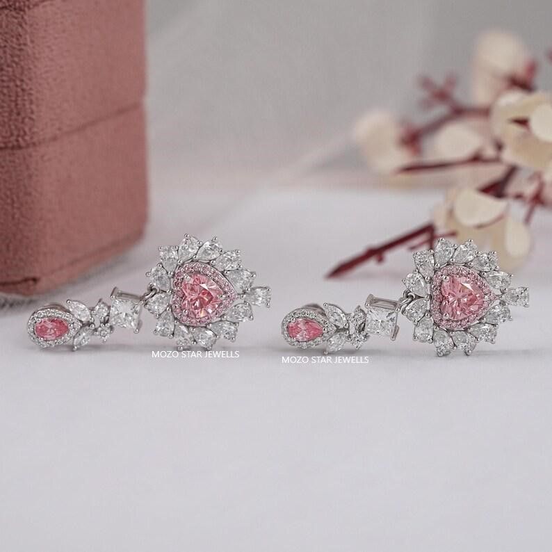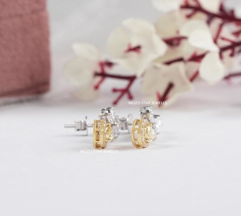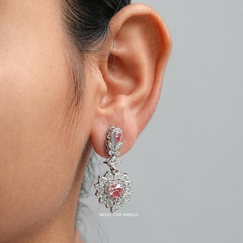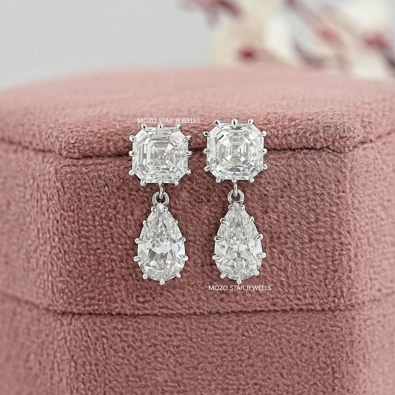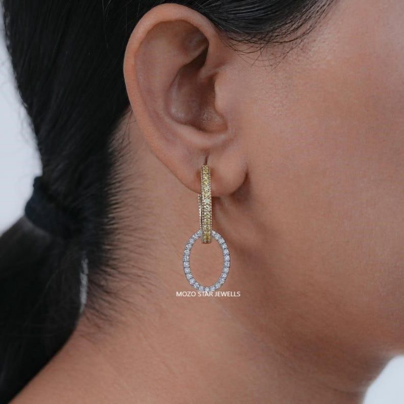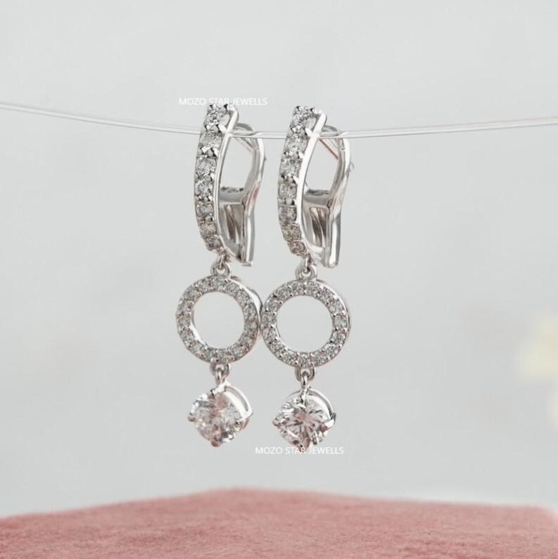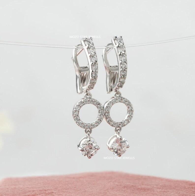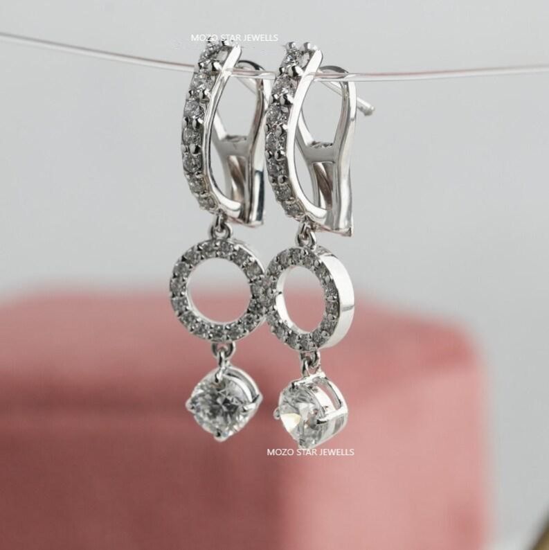 Emerald Moissanite Earrings, Halo Moissanite Wedding Earrings, Dangle Drop Moissanite Engagement Earrings, Off-White Moissanite Earrings , Round Moissanite Women's Earrings, Elevate Your Elegance With Moissanite by MOZO STAR JEWELLS.