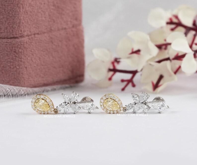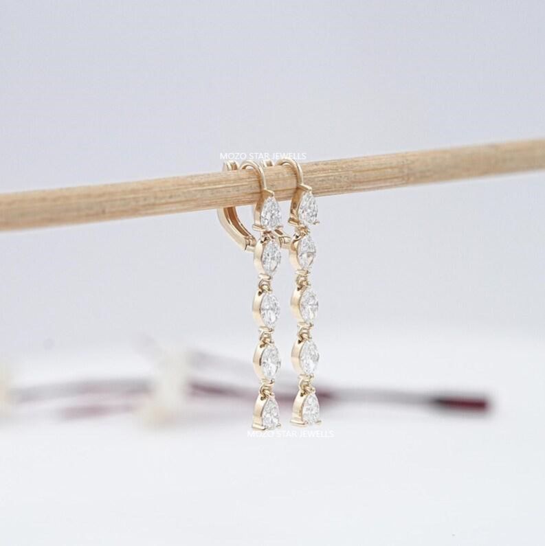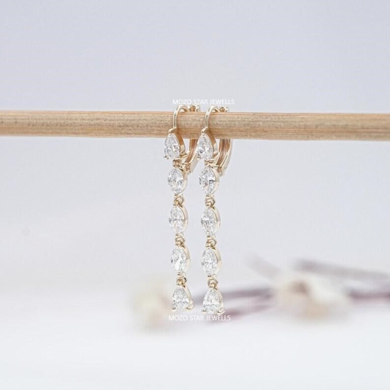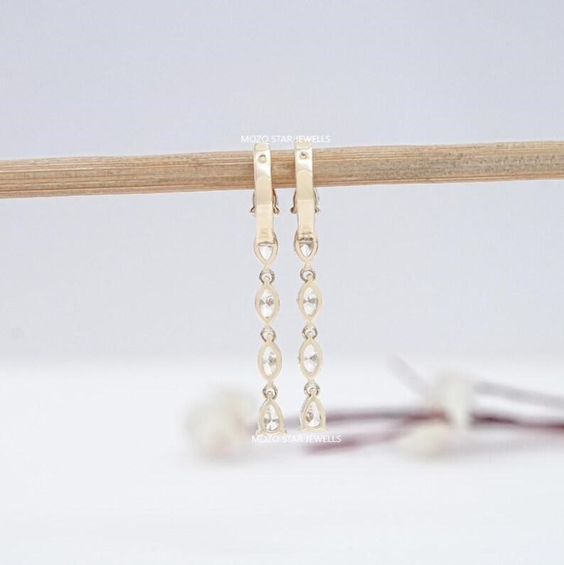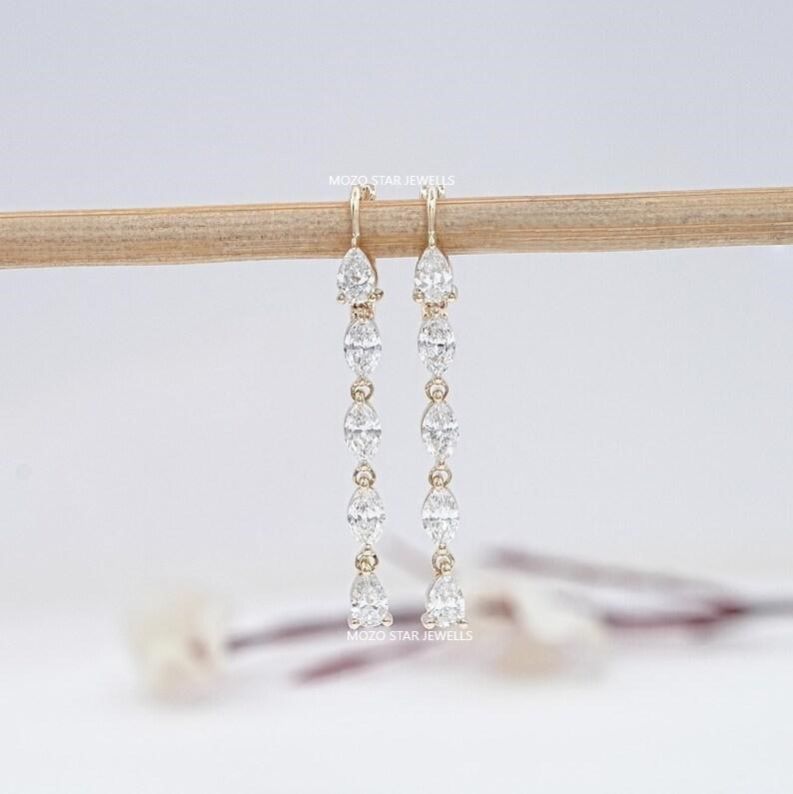 Marquise and Pear Moissanite Earrings, Colorless Moissanite Wedding Earrings, Dangle Drops Moissanite Bridal Earrings, 14K Solid Gold Earrings, Screw Back Moissanite Anniversary Earrings, Elevate Your Elegance With Moissanite by MOZO STAR JEWELLS.
