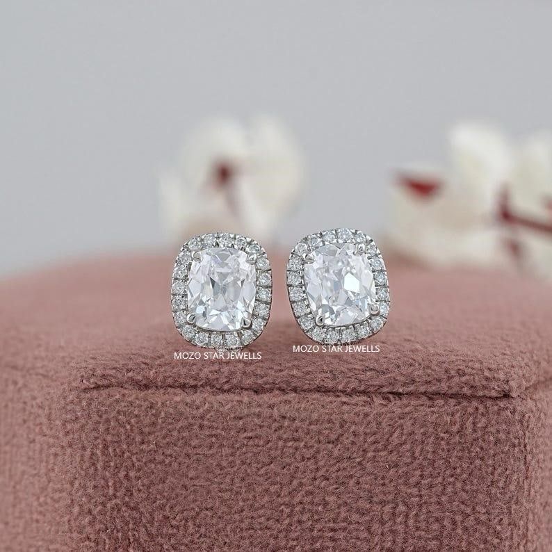 Cushion Moissanite Stud Earrings, Colorless Moissanite Bridal Earrings, Solitaire Moissanite Engagement Earrings, 14K Gold Moissanite Earrings , Double Prong Set Moissanite Bridesmaid Ring, Elevate Your Elegance With Moissanite by MOZO STAR JEWELLS.