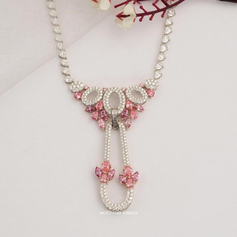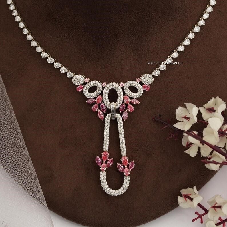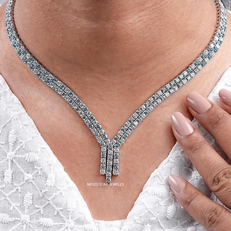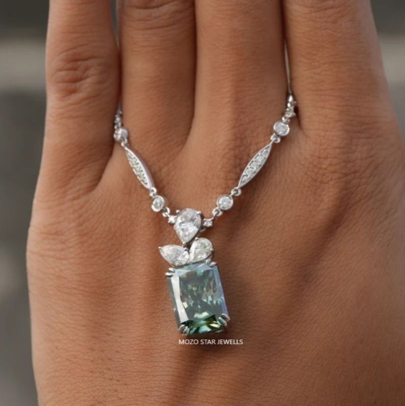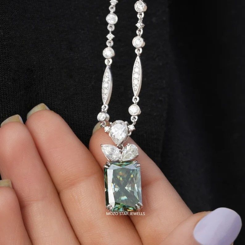 Moissanite Wedding Necklace, Radiant Moissanite Bridal Necklace, Green Moissanite Engagement Necklace, Vintage Style Moissanite Necklace , 14K Solid White Gold Moissanite Anniversary Necklace, Elevate Your Elegance With Moissanite by MOZO STAR JEWELLS.