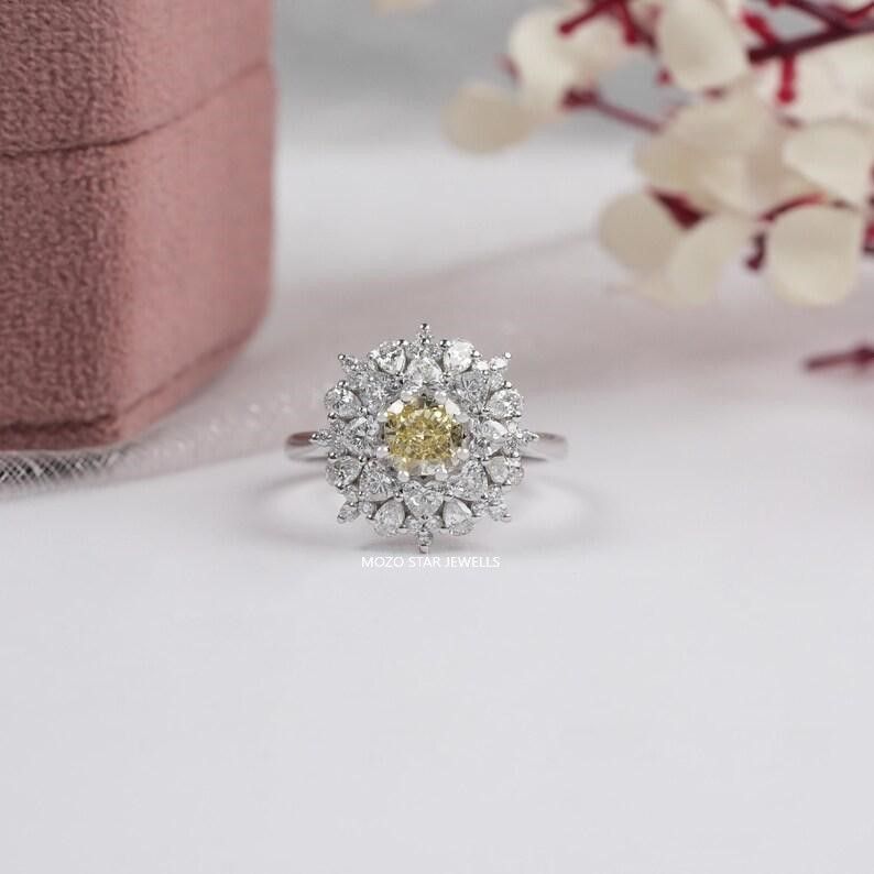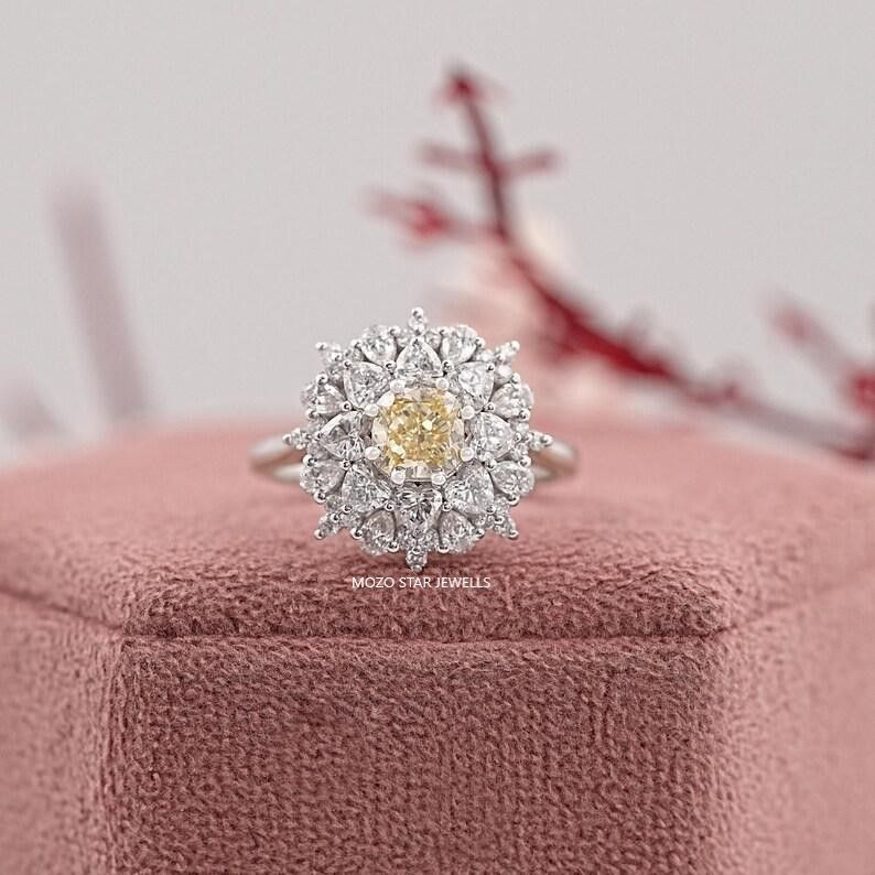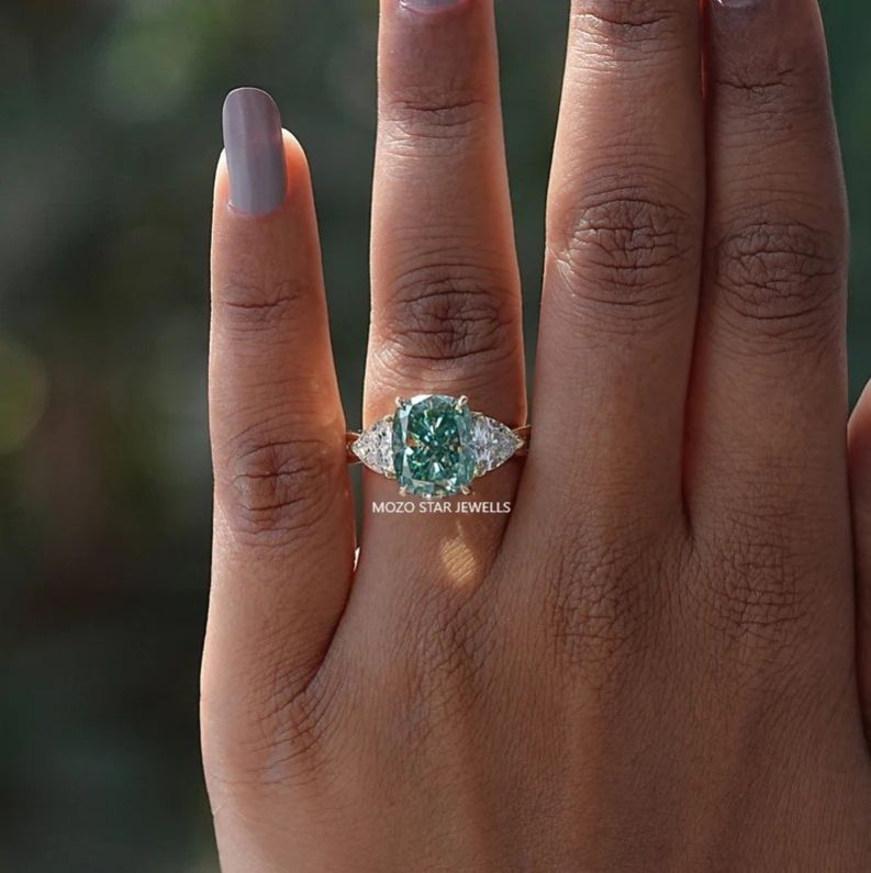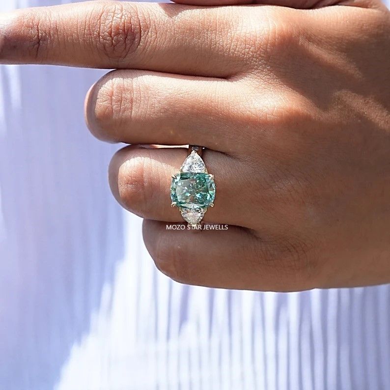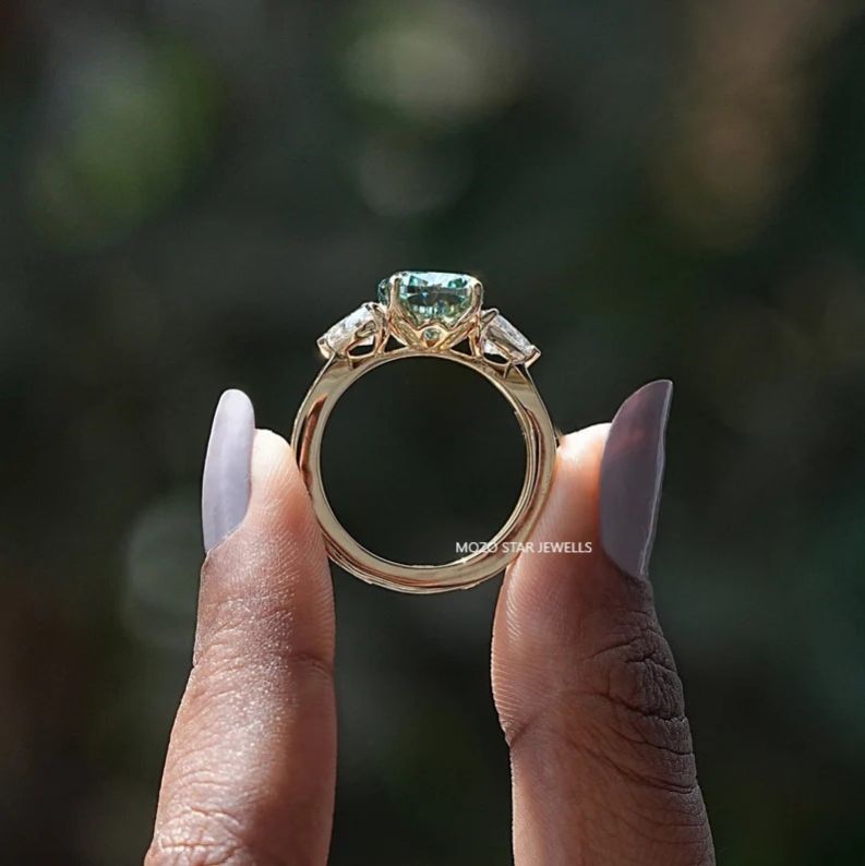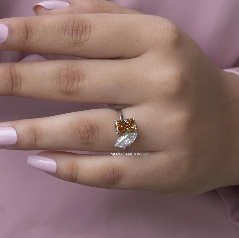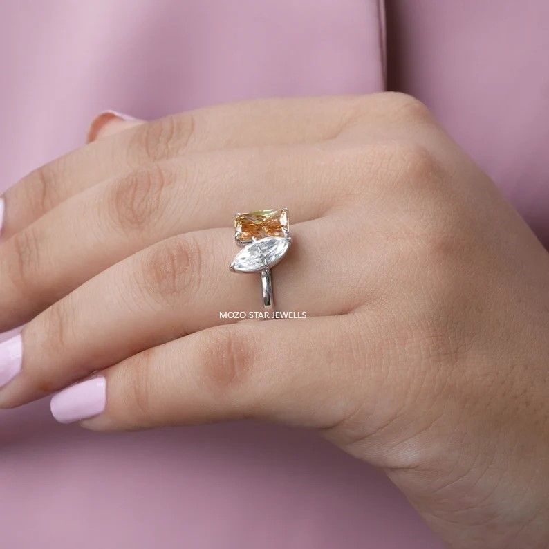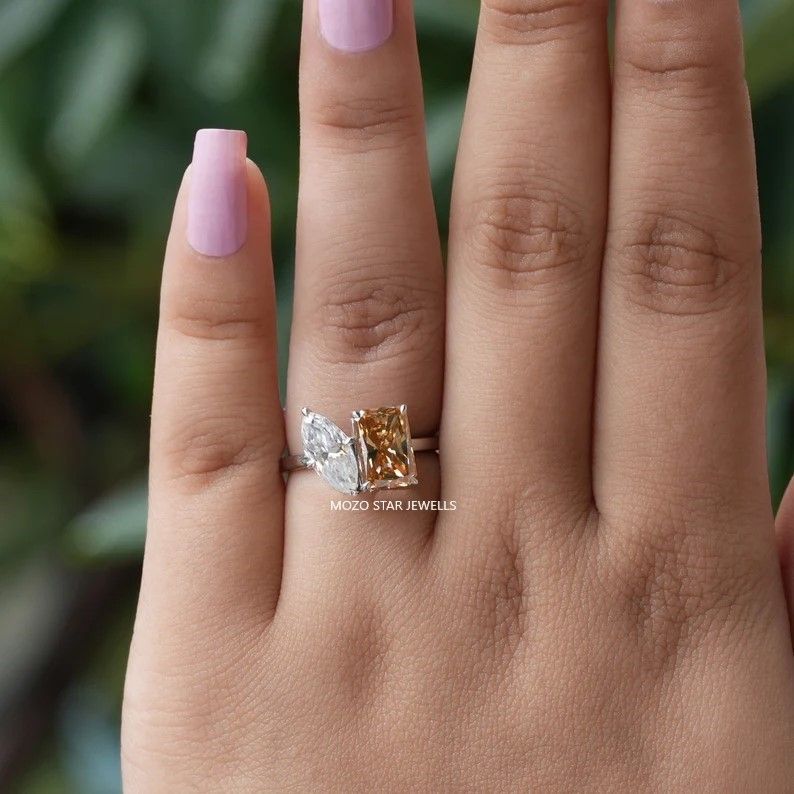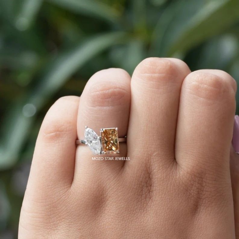 Two Stone Moissanite Bridal Ring, Radiant Moissanite Bridesmaid Ring, Blue-Green Moissanite Engagement Ring, Toi Et Moi Moissanite Wedding Ring, 14K Solid Gold Moissanite Anniversary Ring, Yellow Pear Moissanite Proposal Ring Birthday Gift For Her, Elevate Your Elegance With Moissanite by MOZO STAR JEWELLS.