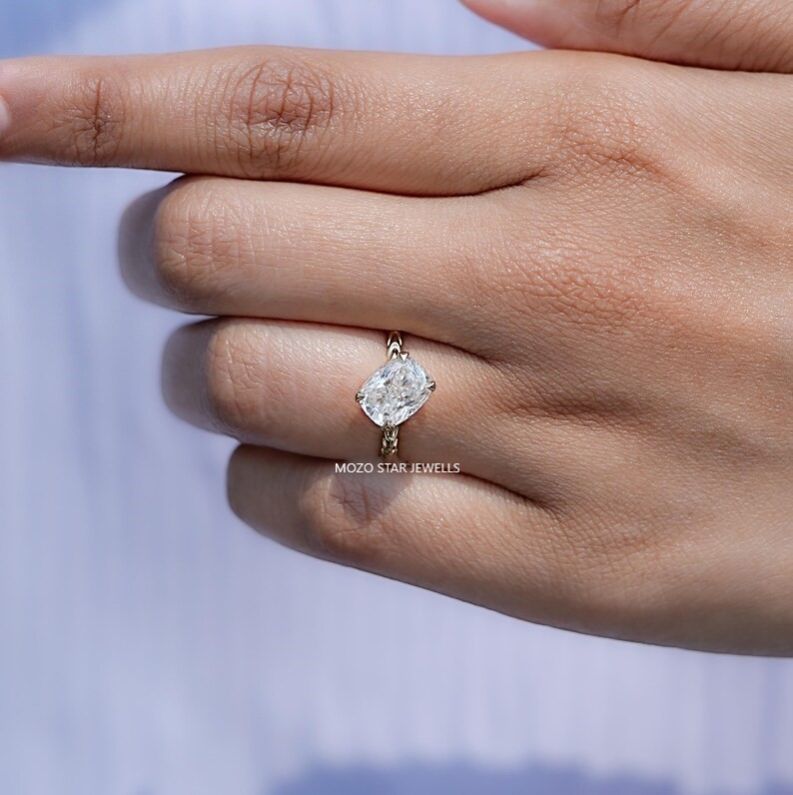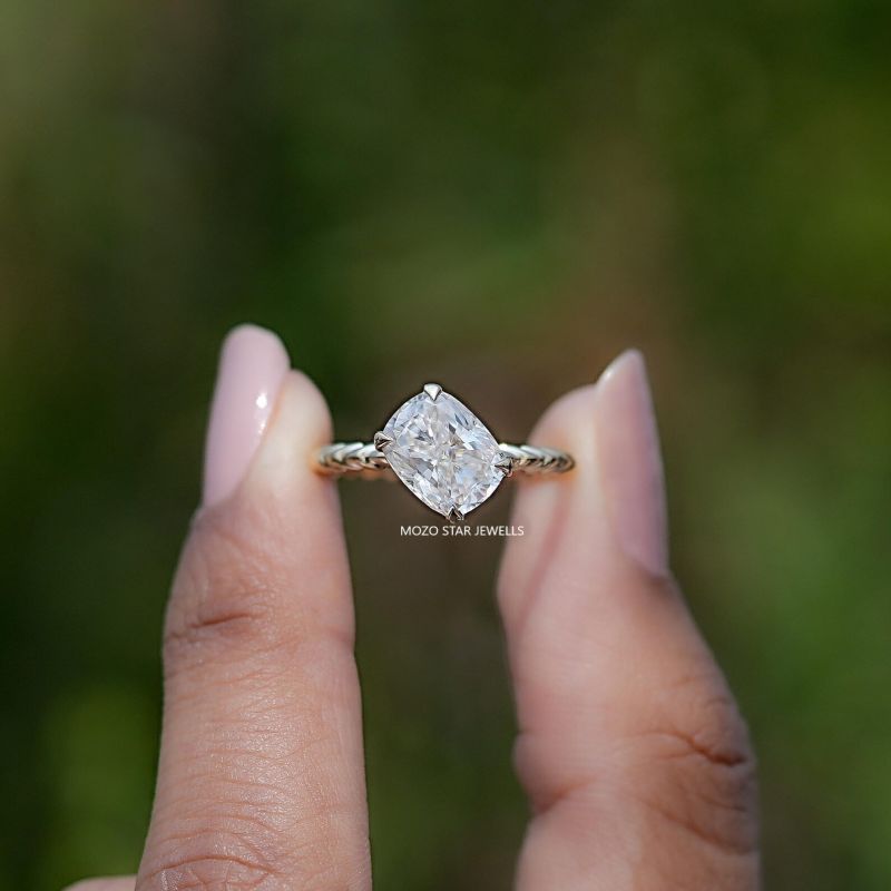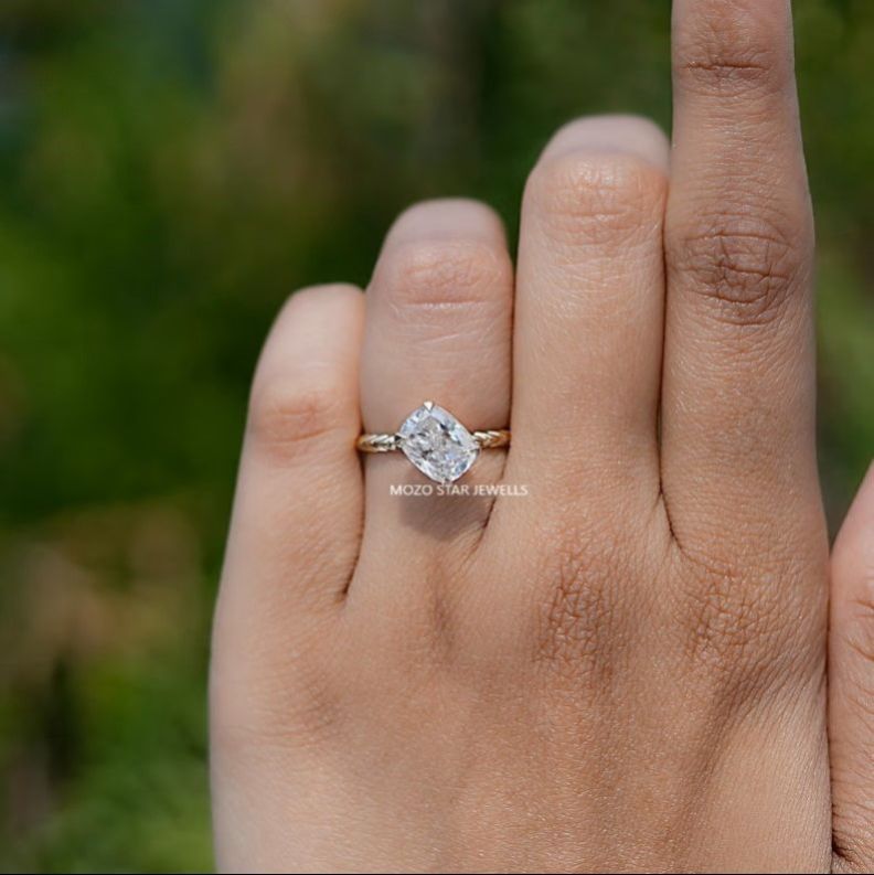 Elongated Cushion Moissanite Engagement Ring, Solitaire Moissanite Proposal Ring, Colorless Moissanite Twisted Shank Ring, Wedding Gift, 14K Solid Gold Moissanite Bridal Ring, Bridesmaid Gift, Elevate Your Elegance With Moissanite by MOZO STAR JEWELLS.