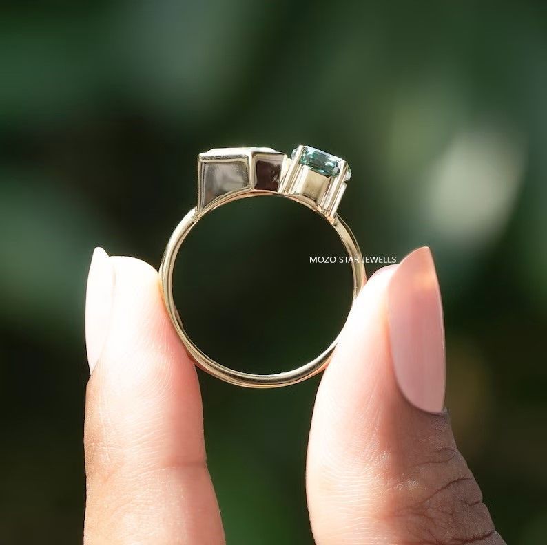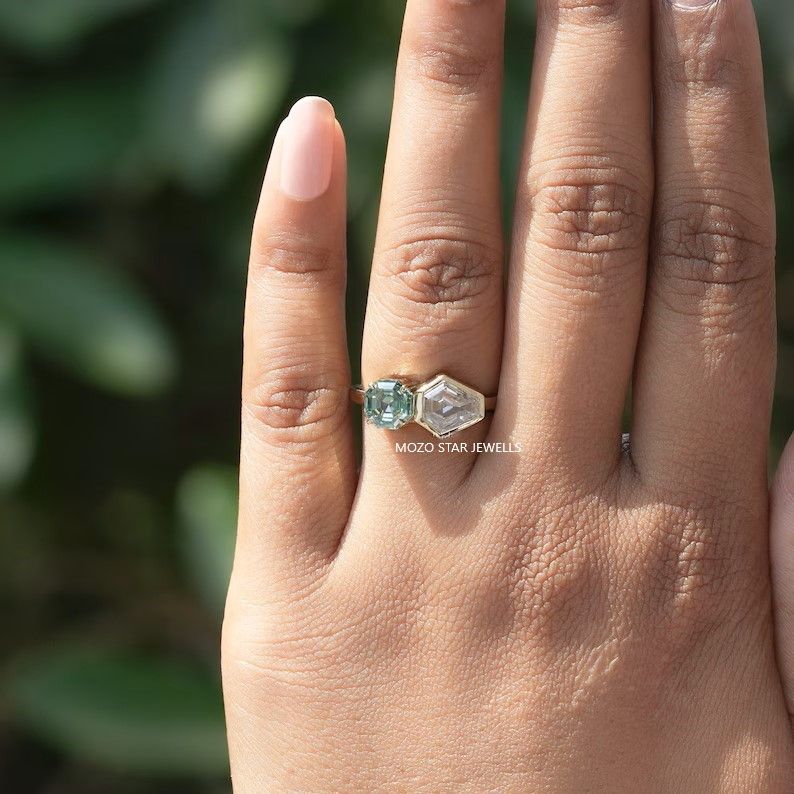 Octagon & Shield Cut Moissanite Bridal Ring, Blue-Green Moissanite Toi Et Moi Ring, 14K Solid Gold Moissanite Proposal Ring, Gift For Her, Bezel & Prong Set Moissanite Anniversary Ring For Wife, You & Me Moissanite Wedding Ring, Perfect Moissanite Jewelry For Women, Elevate Your Elegance With Moissanite by MOZO STAR JEWELLS.